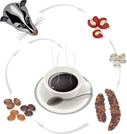 一杯猫屎咖啡是如何酿成的:椰子猫吃了咖啡果后,将不消化的种子排出体外,这些裹着粪便的豆子被清洗晒干后,就成了价值连城的猫屎咖啡。